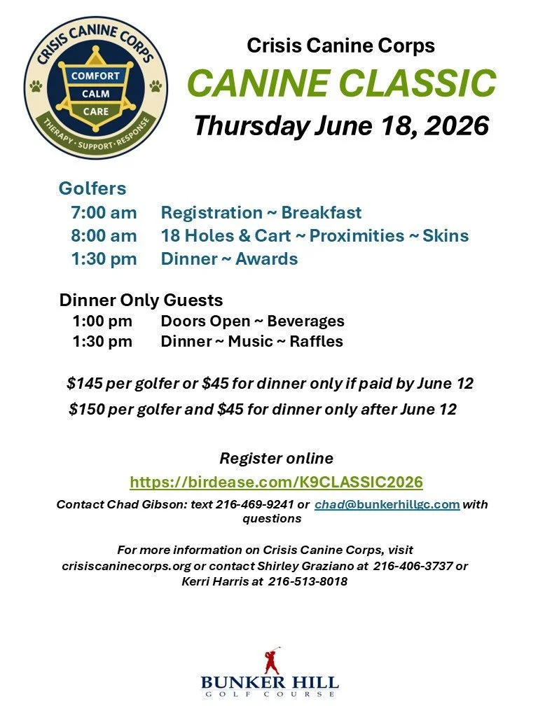 For event questions, please contact Chad GibsonText: 216-469-9241Email: chad@bunkerhillgc.com Please join us! CLICK HERE TO REGISTER ONLINE